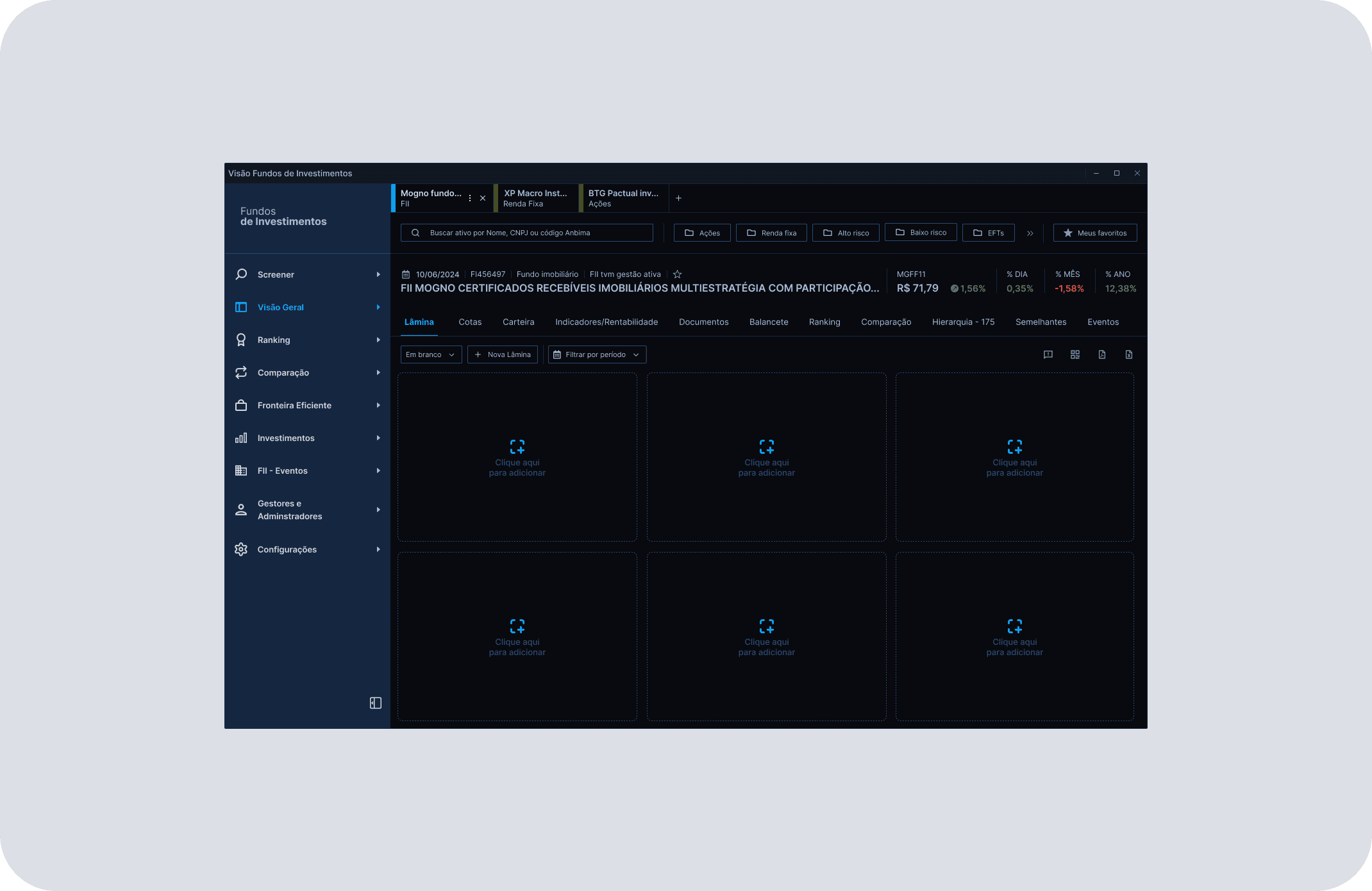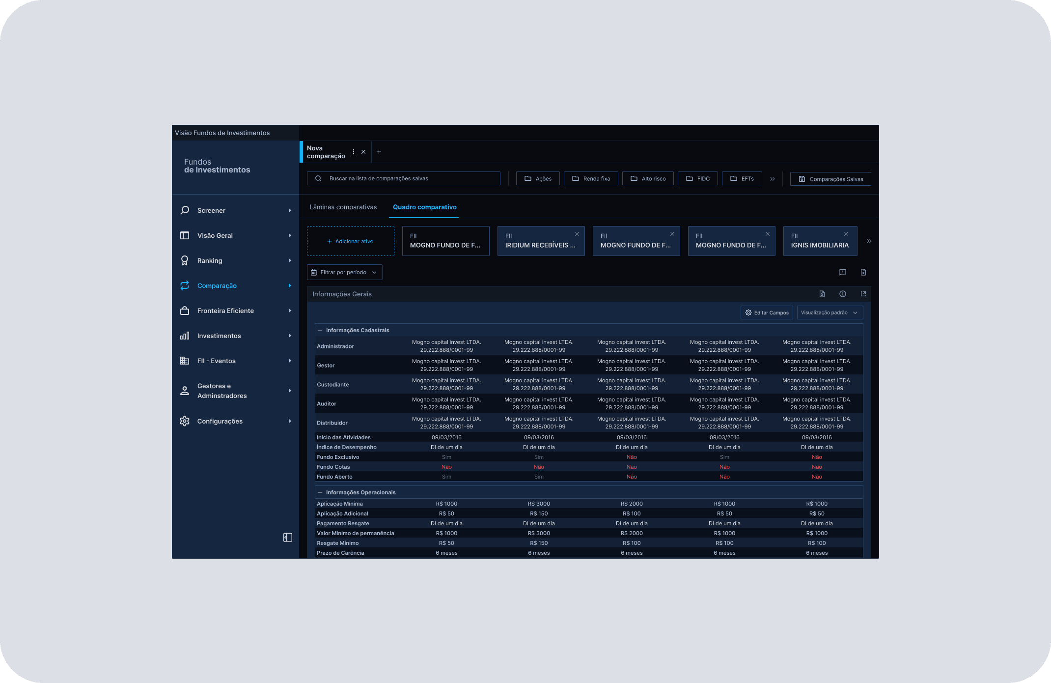 Redesign the "Investment Funds Overview" area of the broadcast+ software, aiming to update the look and user experience of the product to increase the conversion rate.